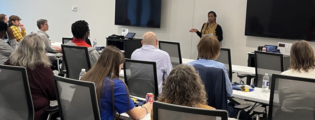 [Phaedre speaking to high school students at Ameriprise Financial’s headquarters for their Meet-and-Greet.]